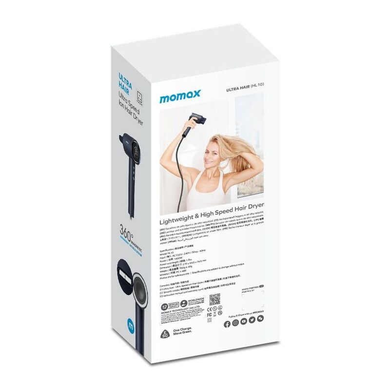 Momax Ultra Hair Ultra-Speed Ion Hair Dryer - Blue