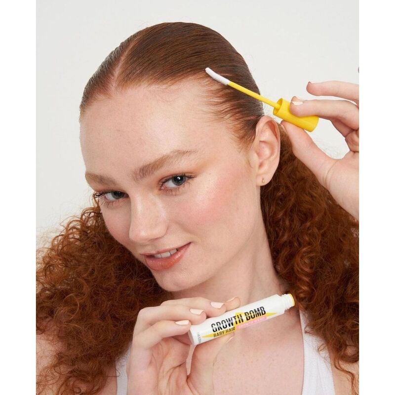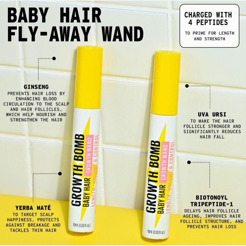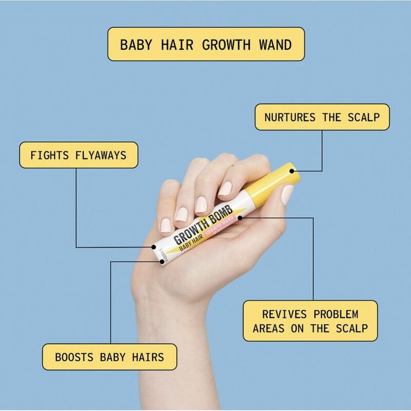 Forget hairspray and pins - this serum is our leave-in formula that NURTURES THE SCALP & HOLDS BABY HAIRS at the _start of your hairline FIRM. It takes the FIGHT to FLYAWAYS when wearing your hair up, and it's packed with GOODNESS to SUPPORT baby hair as it grows through to MATURITY.