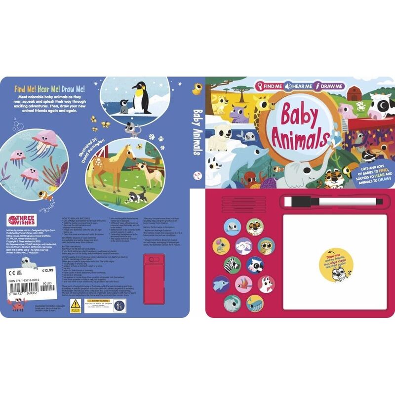 Meet adorable baby animals as they roar, squeak and splash their way through exciting adventures. Then, draw your new animal friends again and again with the whiteboard and wipe-clean pen.