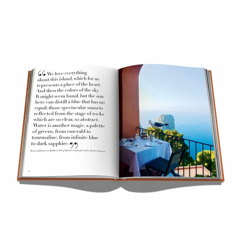 Capri, a resort island dating back to the height of the Roman Empire, has long been an extraordinary destination full of ancient charm. Cherished by everyone from physician Axel Munthe, who recommended its clean air to his patients as a cure for bronchitis; to film director Jean-Luc Godard as the setting for his 1963 film Contempt; to literary icons, celebrities, poets, and the jet set, Capri boasts a rich Mediterranean spirit and style that encompasses a wealth of beauty, from gardens to villas to caves to the people walking in the lively Piazzetta, where cars are prohibited and the island’s playful attitude runs rampant. Capri Dolce Vita is a look at this fabled corner of the world through the ages and acelebration of paradise on earth.