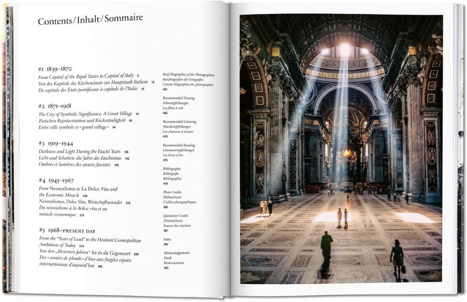 Reaching back into illustrious archives, some of the book's early images offer us a privileged Grand Tour glimpse of some of Rome's most treasured landmarks, revealing the Colosseum, Roman Forum, and Spanish Steps almost void of crowds. Later pictures survey the city's contrasts - from the luxurious homes and leisure activities of the privileged to street stalls and laundry lines in the working class districts of Trastevere and Testaccio. Some documentary-style shots show us the dark power of Mussolini, the city bedecked with his own iconography and imagery of strength, athleticism, and the fatherland.