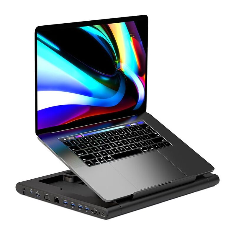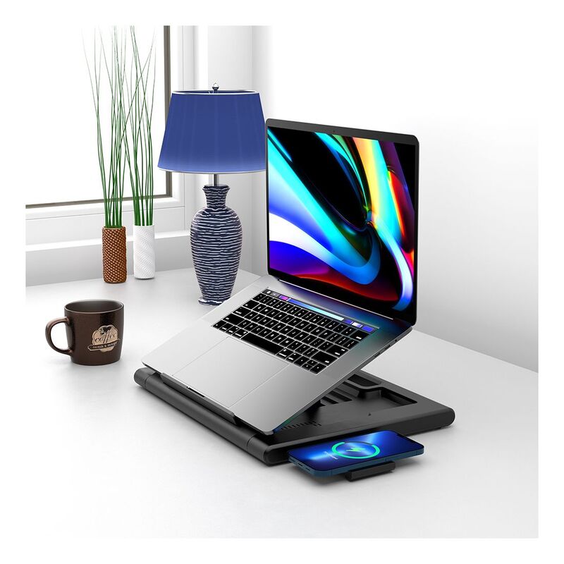 Powerology Multi-Functional Pro Hub Macbook and Laptop Stand with 100W PD and Wireless Charger- Black