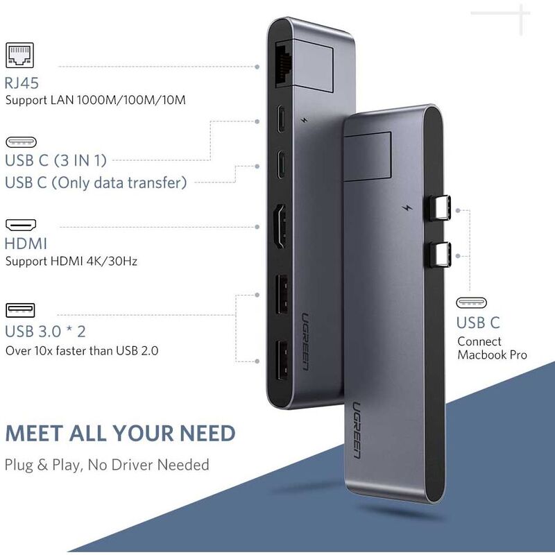 Ugreen 5-in-2 USB-C Hub for MacBook Pro/Air with Gigabit Ethernet Converter