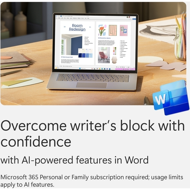 Discover new skills and do more than what you can dream of with AI-powered featuresFootnote1 in Microsoft 365. Edit photos and videos like a pro, turn simple ideas into stunning designs fast, and overcome writer’s block with confidence and ease.