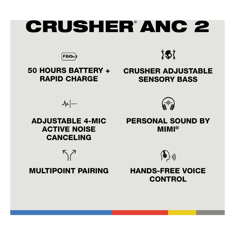 Crusher ANC 2 is the headphone with absolutely everything — Personal Sound and hands-free voice control plus a blend of adjustable 4-mic digital active noise canceling and Crusher Bass that’s so perfect, we had it patented. Experience full sound and amazing bass you can actually feel.