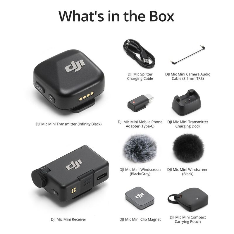 Introducing DJI Mic Mini, a wireless microphone that packs powerful performance into an ultralight body. It ensures stable transmission of high-quality audio, boasts extended battery life, and features direct connection with products in the DJI OsmoAudio™ ecosystem. Experience detail-rich sound recording that elevates your content creation experience. With a simple flip of the case, you are ready to add high-quality audio to any project.