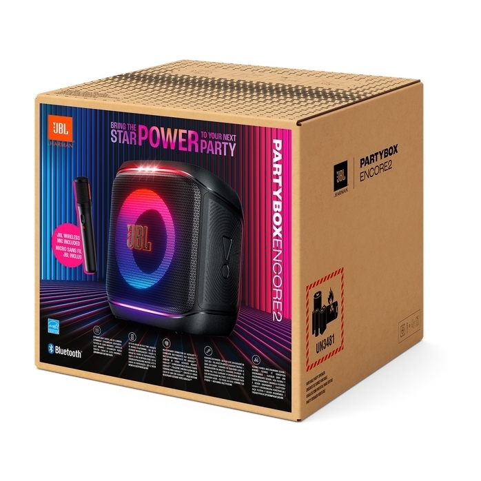 Power up the JBL PartyBox Encore 2 and let the good times roll. With this portable speaker, you'll want to play DJ at every event, with smooth JBL Pro Sound, a light show to fit the mood, and a mic for your emceeing pleasure. Feel that extra oomph in your chest from the epic highs and deep lows, whether your playing a new pop ballad or going with a classic slow jam. Once you’ve nailed the soundcheck, it’s time to turn up the ambiance with a light show that grooves to your beats. Ready to run the show? Grab the digital wireless mic and become your own emcee or karaoke host! You can also customize your sound with adjustable echo, bass, and treble controls to make sure you sound just right. From open rooftops to crowded basements, the JBL PartyBox Encore 2 knows how to adapt, with its grab-and-go handle and IPX4 splash-proof design. What’s better than one JBL PartyBox Encore 2? Two! Pair them up for true stereo vibes or link with other JBL Auracast™-enabled speakers for an even wilder dance party. And if 15 hours of nonstop jams isn’t enough, grab a spare rechargeable battery to keep the music going. Make the vibes immaculate with the JBL PartyBox app, where you can control your playlist, add fun sound effects, and pick the perfect light show mood—all while you’re doing the worm on the dance floor. Whatever the occasion, the JBL PartyBox Encore 2 knows how to bring all the feels.