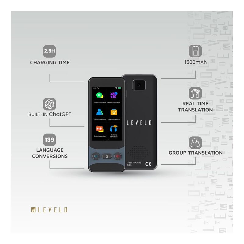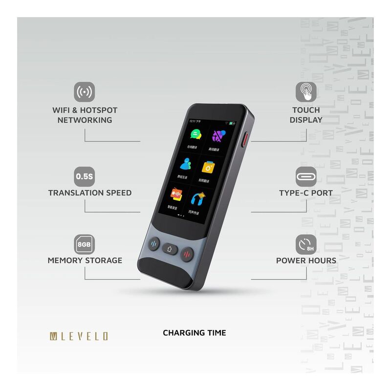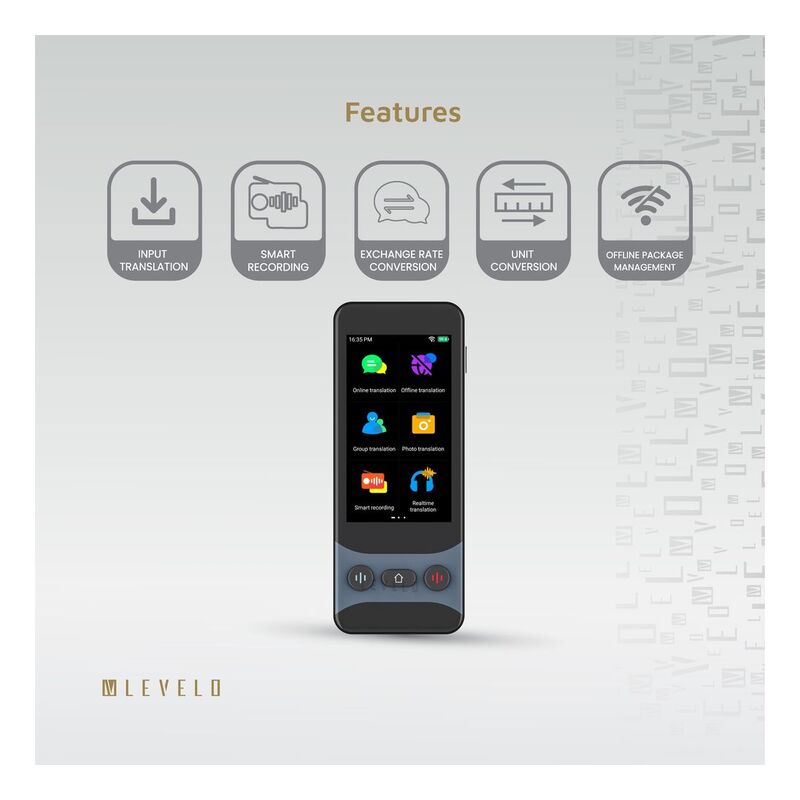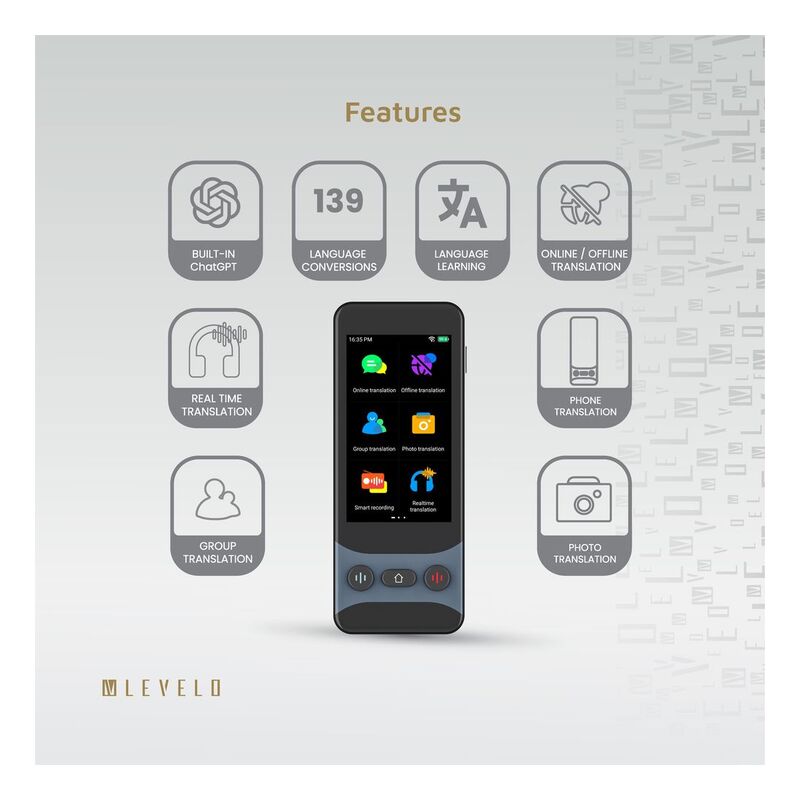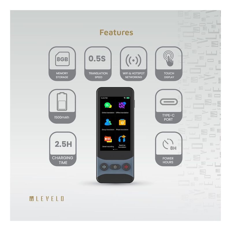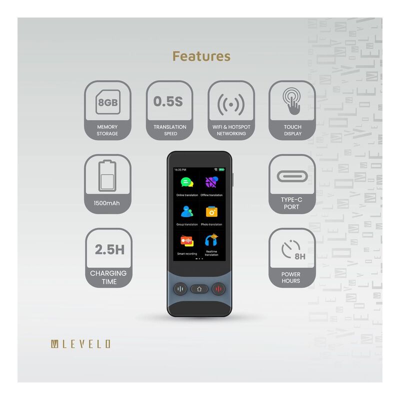 Levelo FluentLink Offline & Online Voice Translator - Grey