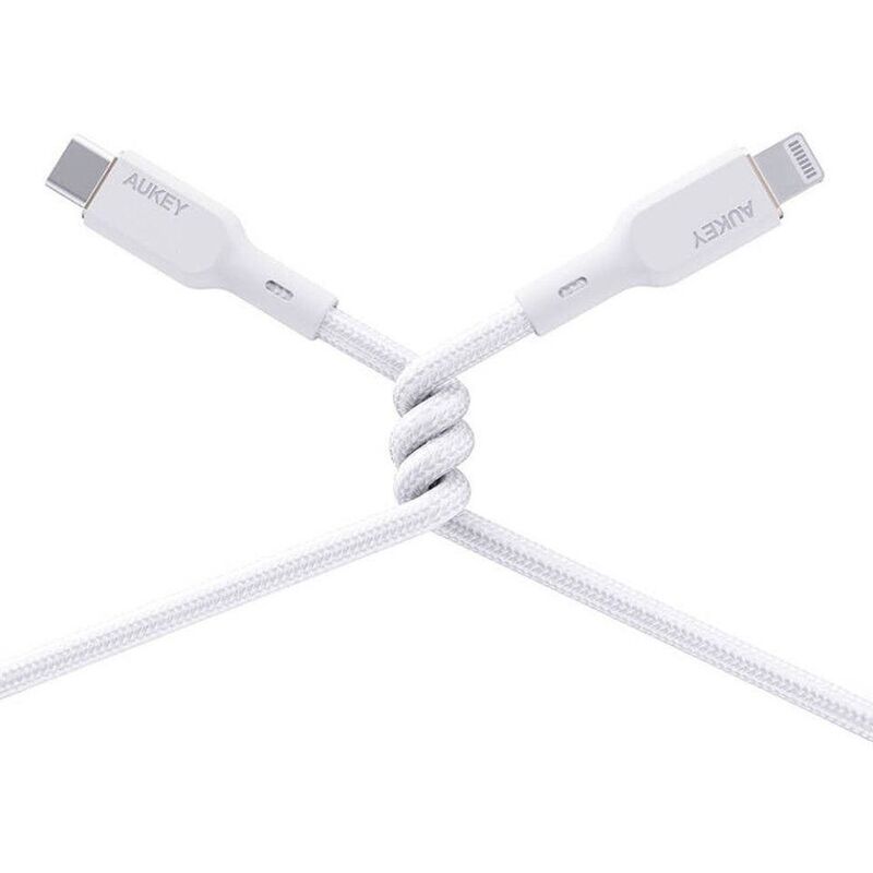 Aukey 1.8M Nylon Braided USB-C To Lightning Cable - Wite
