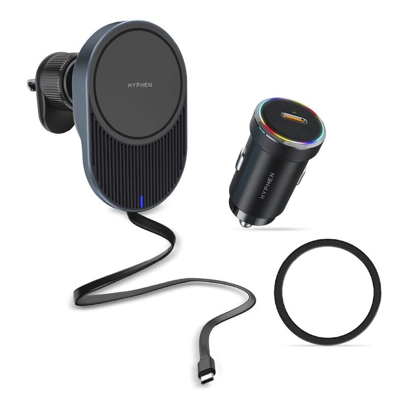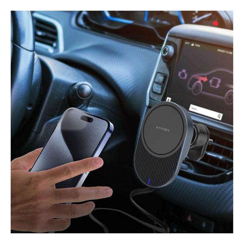 Hyphen MAGT WC15 MagSafe Wireless Car Charger 15W With Built In Type C Cable - Black