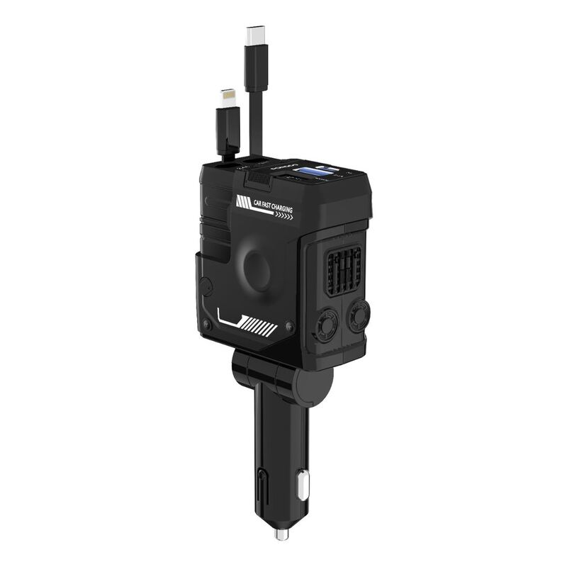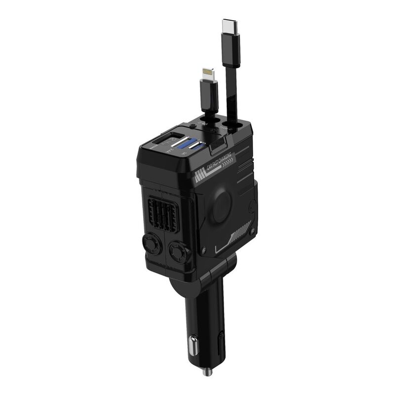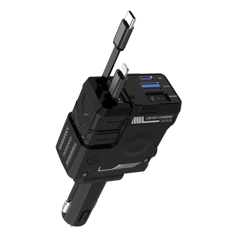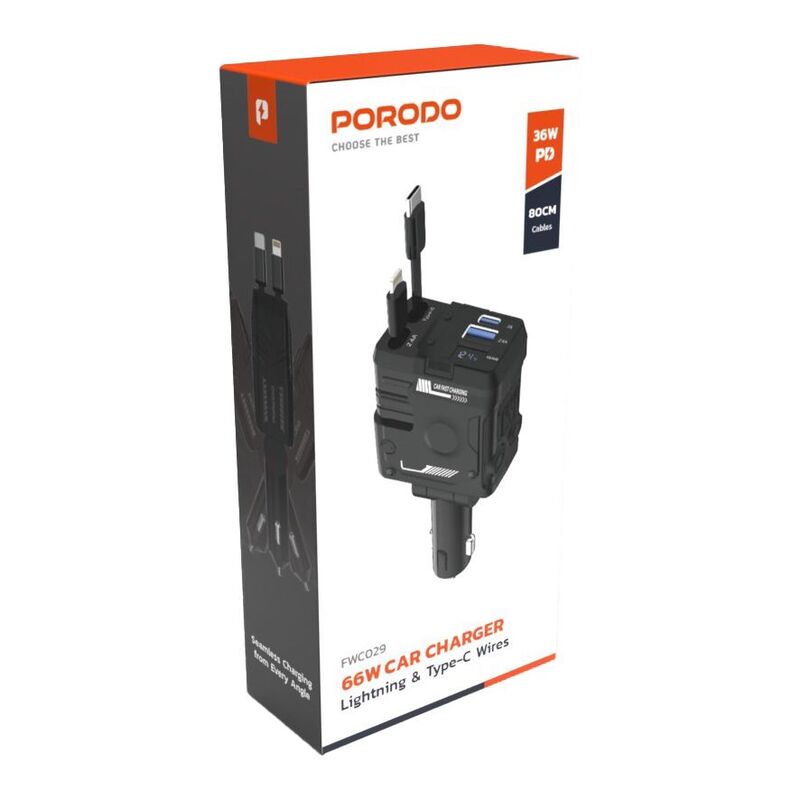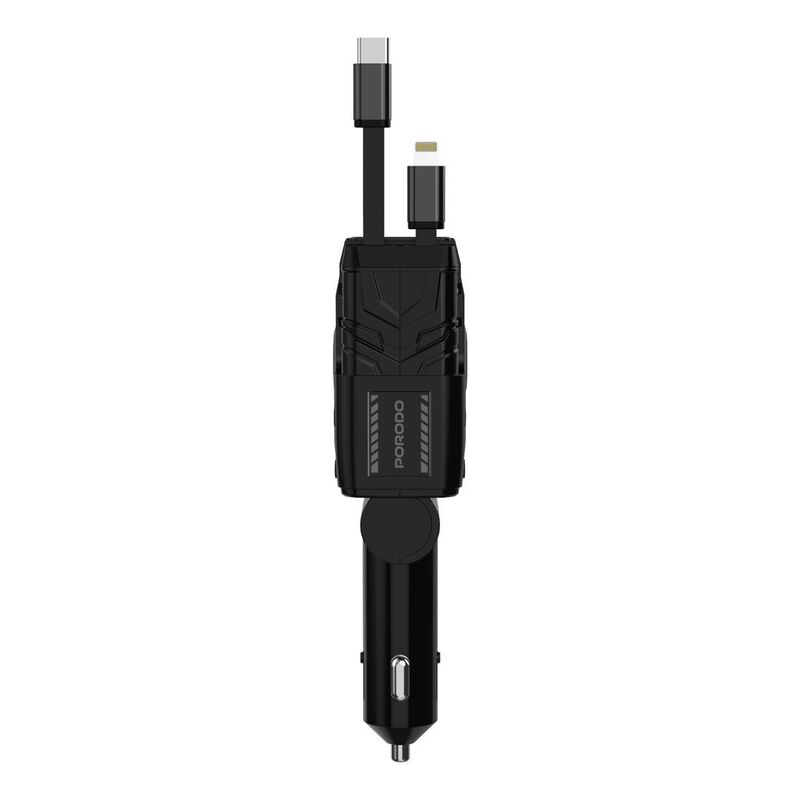 Porodo 66W Car Charger Lightning & Type -C Wires - Black