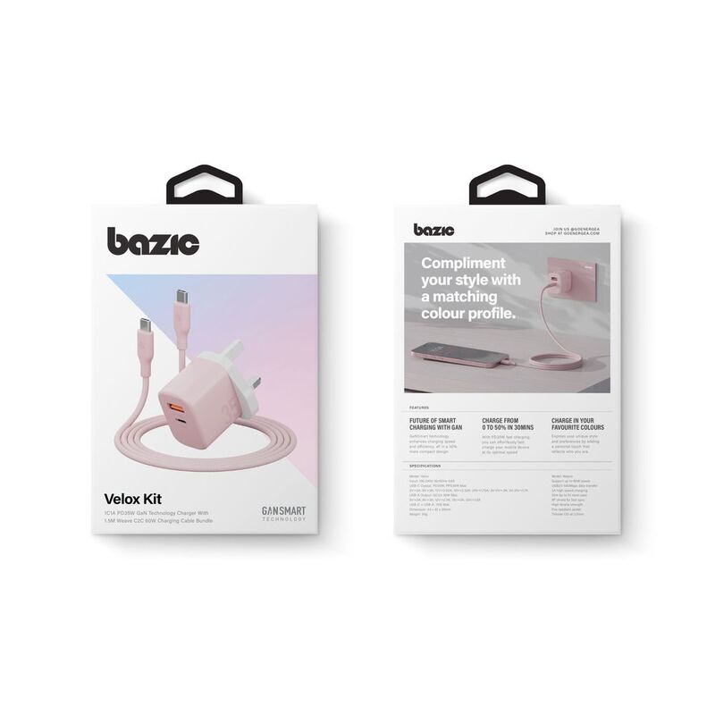 Energea Bundle Goport Velox Bundle UK Charger 35W With Weave Cable - Peach