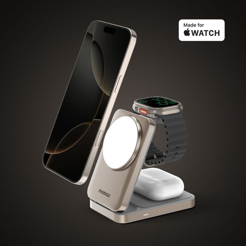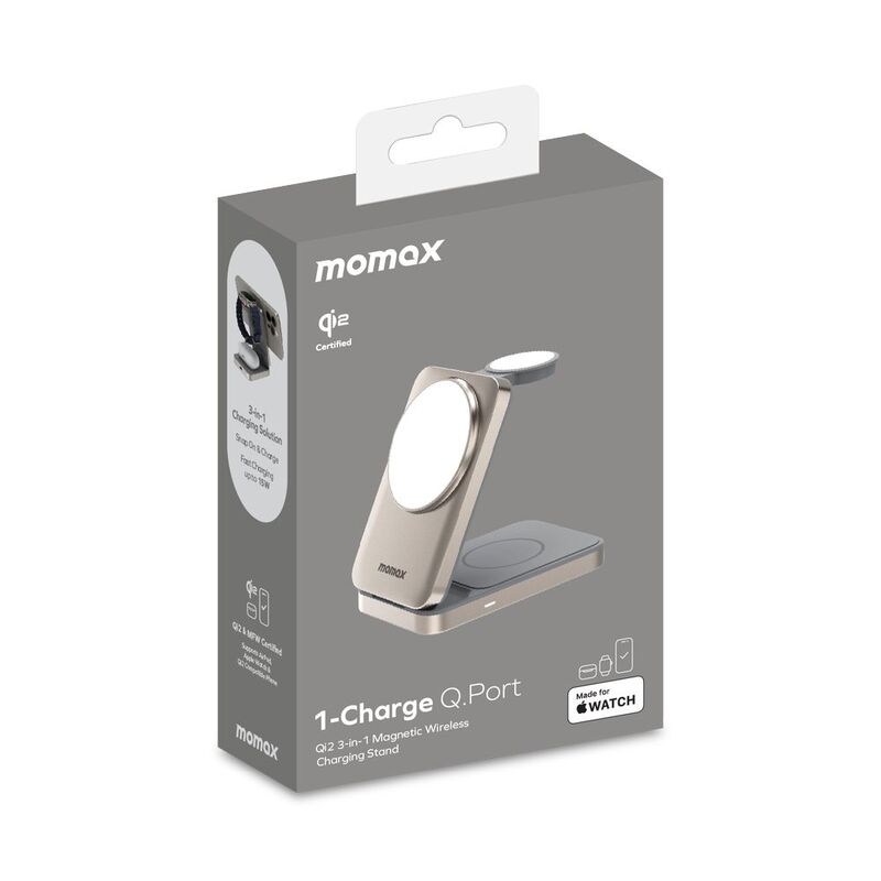 Momax 1-Charge Q.Port Qi 2 15W 3-In-1 Magnetic Wireless Charging Stand - Titanium