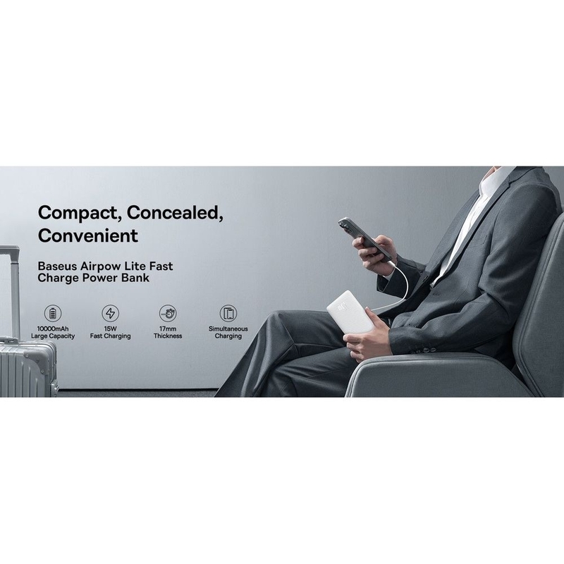 Baseus Airpow Lite Power Bank 10000mAh 15W - Moon White