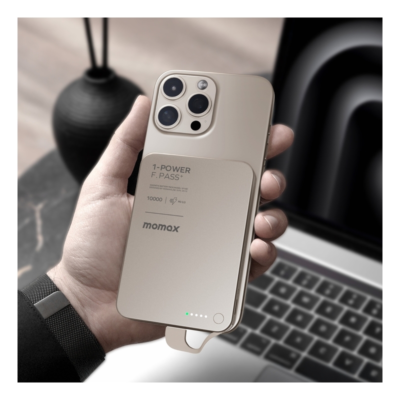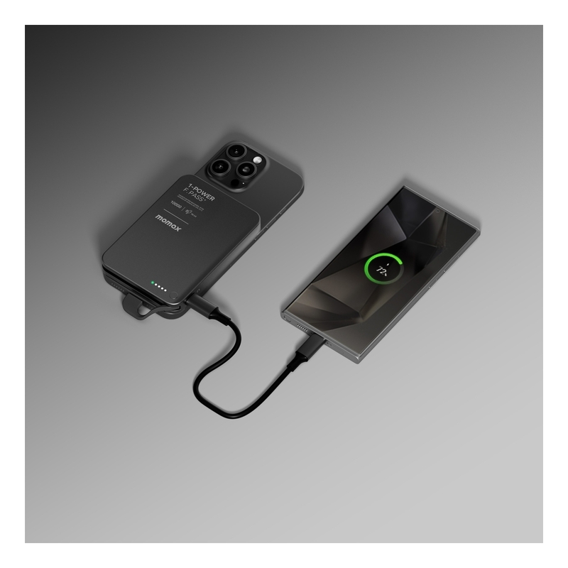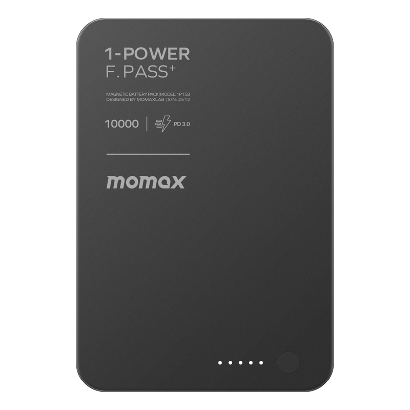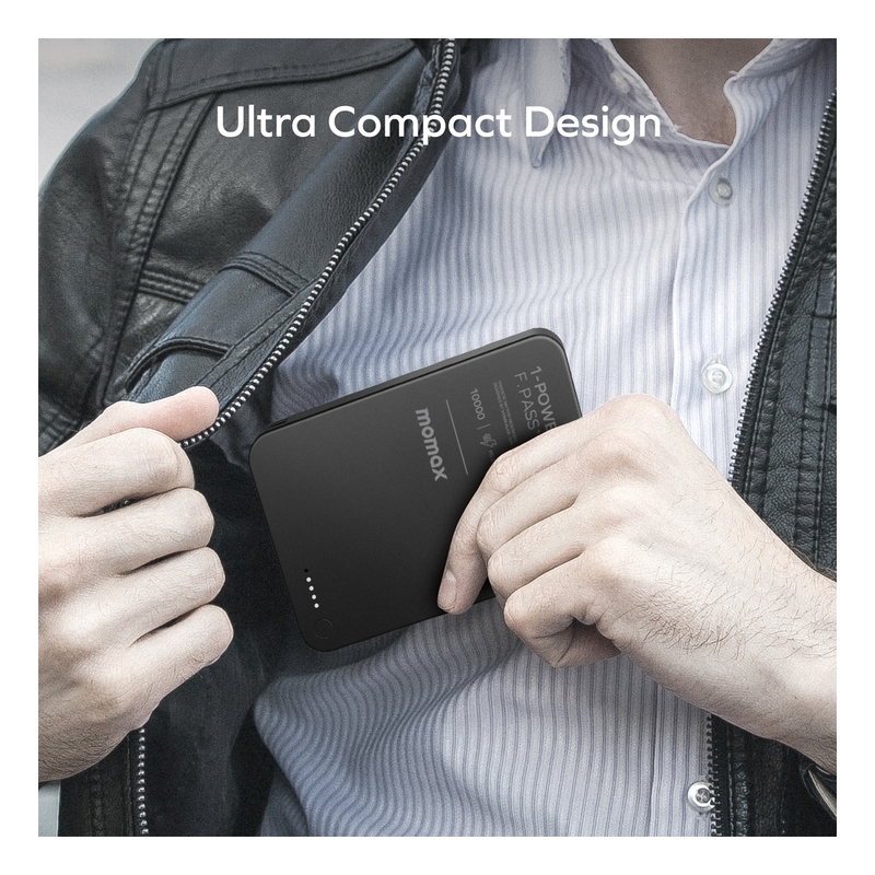 Momax 1-Power F.Pass+ 10000mAh Power Bank With Built-In Cable & Magnetic Attachment - Black