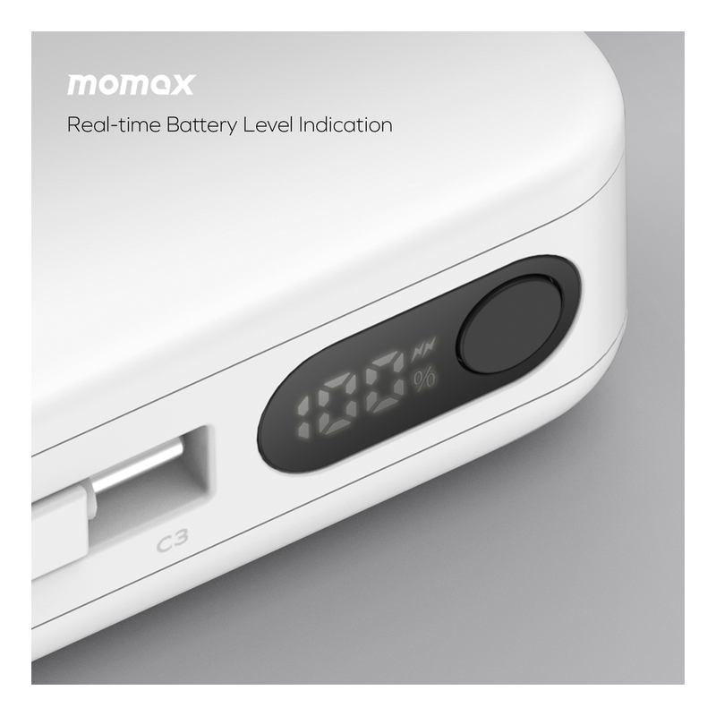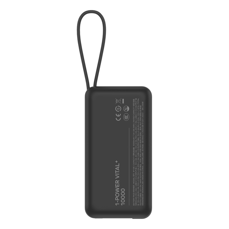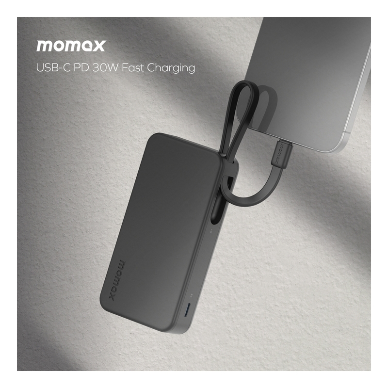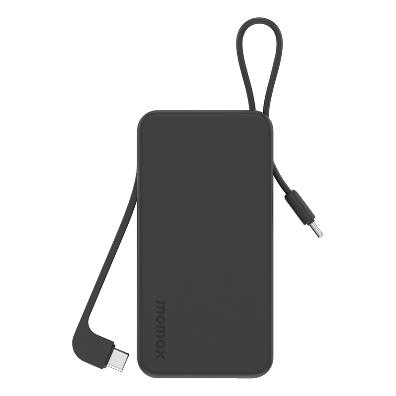 Momax 1-Power Vital+ 10000mAh Power Bank With Dual Built In USB-C Cable - Black