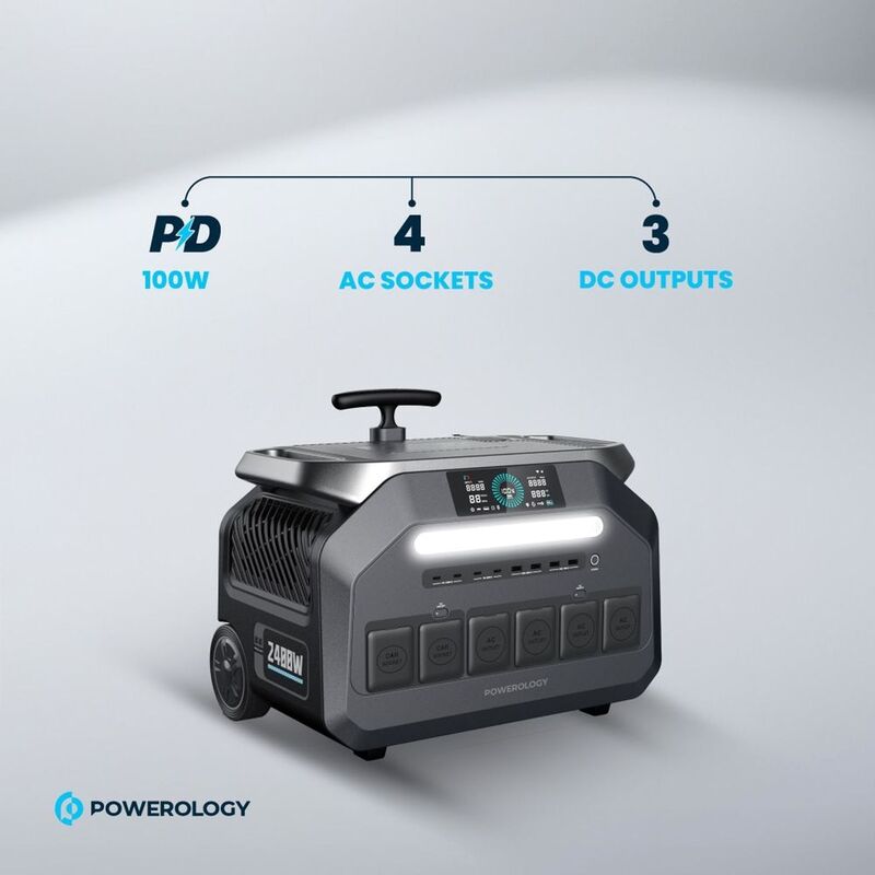 Powerology Solar Input Portable 640000mAh Generator 2500W - Black