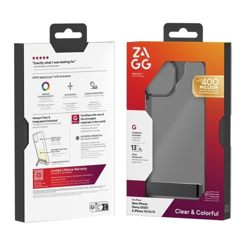 ZAGG Santa Cruz Case with Kickstand for iPhone 16e/ 15/14/ 13 - Black