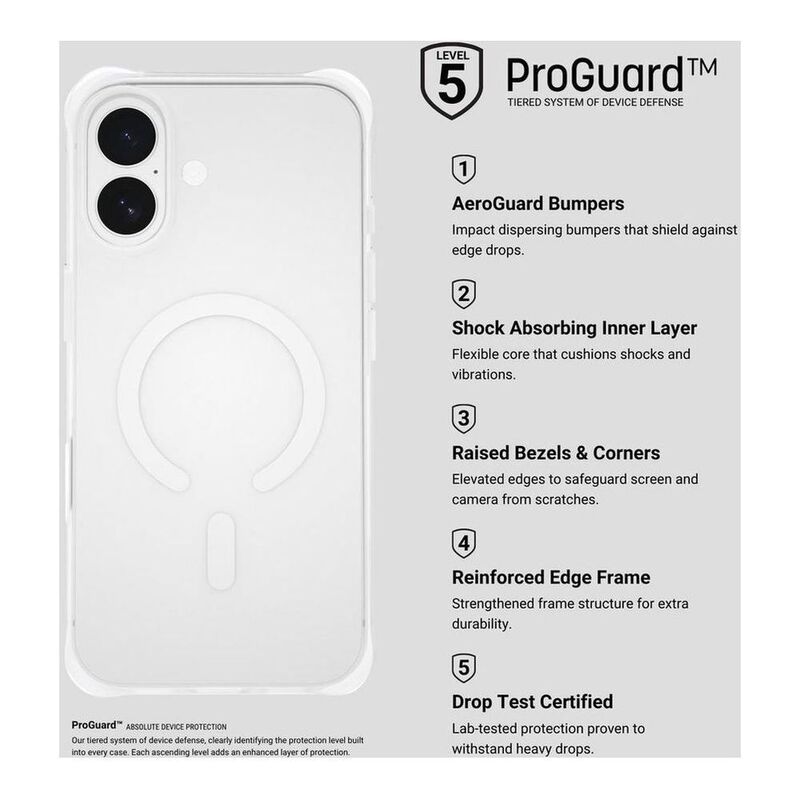 Clear hybrid design with dual PC plating for front and back reinforcement Integrated airbag bumpers at all corners to absorb and disperse impact Flexible TPU frame for easy installation and strong grip Slim profile with rugged protection — built for daily drops and shocks Compatible with MagSafe wireless charging and accessories UV-resistant and anti-yellowing coating preserves long-term clarity