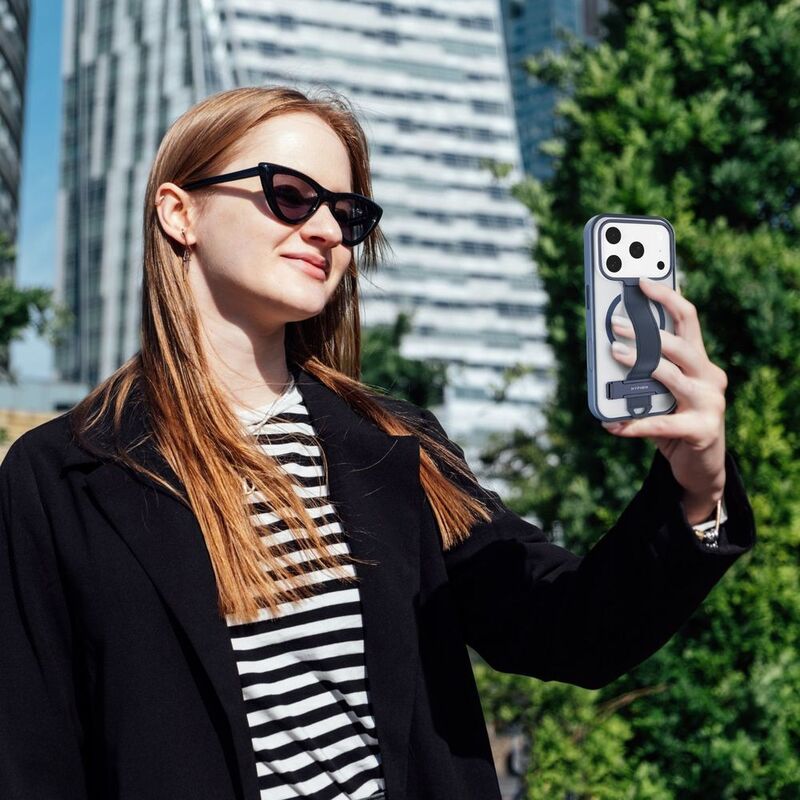 A built-in, reinforced strap keeps your phone secure in hand—ideal for content creators, commuters, or one-handed users. Flip it out for instant horizontal or vertical viewing. Crafted from premium metal for stability and durability. Designed with a built-in loop for attaching a wrist or neck strap—hands-free, drop-safe functionality for daily carry. Tough build case that protects your device from everyday bumps and accidental drops. Premium tactile buttons and a polished camera ring complete the look with subtle detailing.