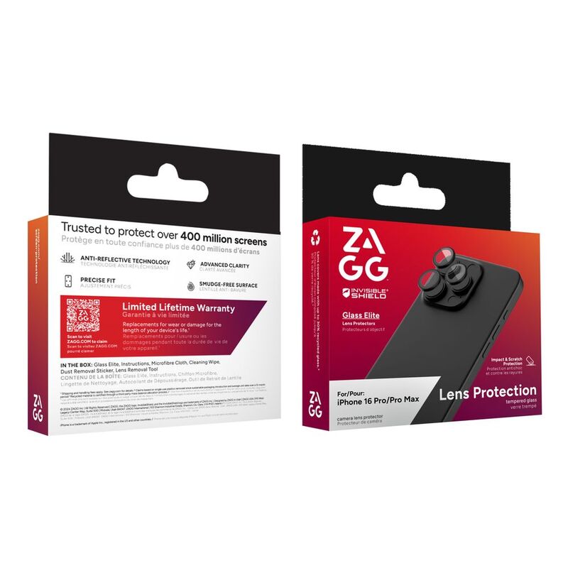 Zagg Invisibleshield Premium Glass Elite Camera Lens for Apple iPhone 16 Pro/ Pro Max - Jim/ Michael