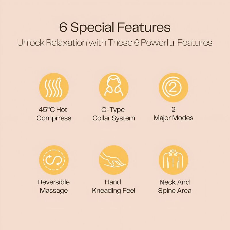 - Human Hand-Like Kneading: Simulates hand kneading for a natural, comforting massage.