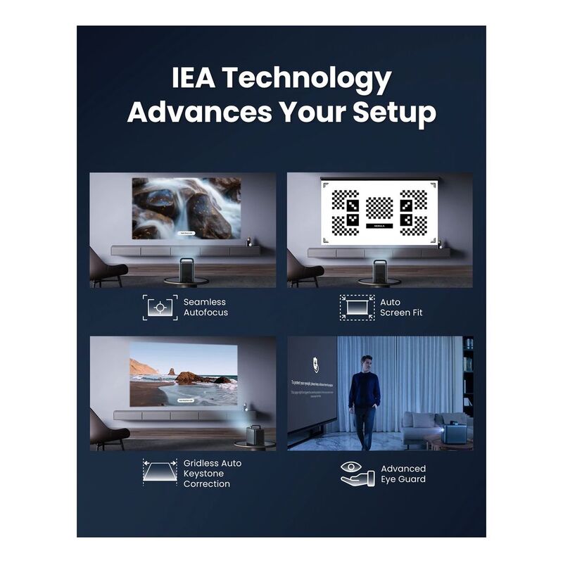 Intelligent Environment Adaptation (IEA) Technology creates a theater in seconds. Watch your room be analyzed to create a perfect-fitting screen without any interruptions.