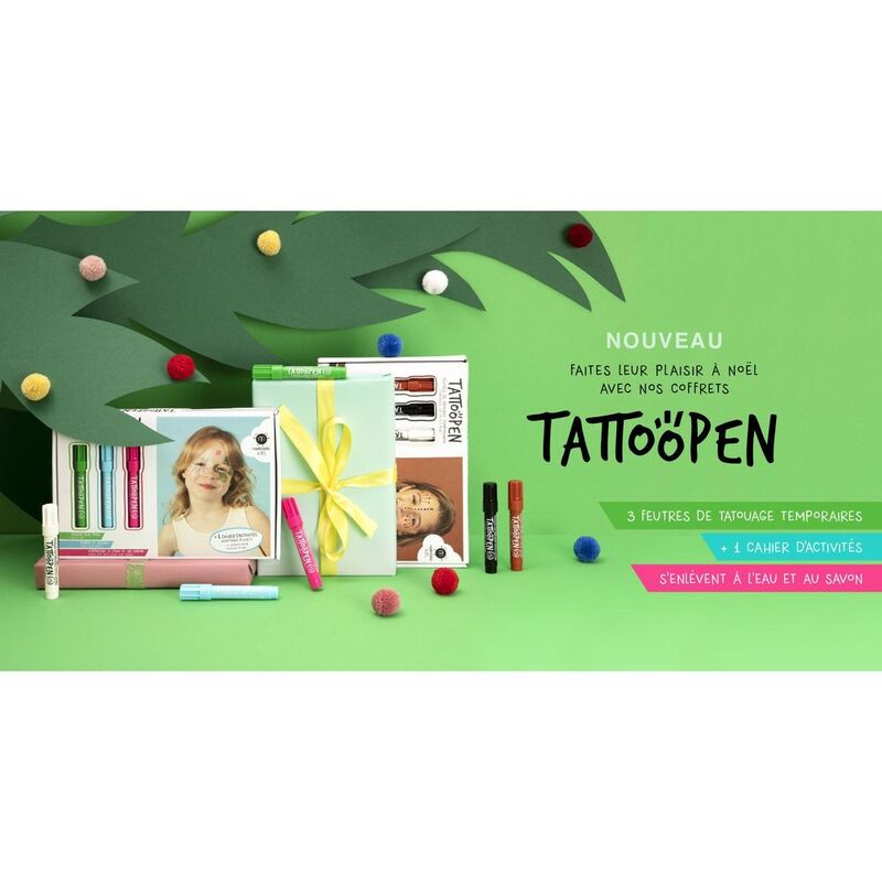 3 kits, 3 themes! We’ve also come up with a whole concept for little craft lovers. Each kit contains 3 temporary tattoo felt pens and 1 activity book. And each one gets deeper into a creative universe: Planet, Tribe and Art, with games and dares, and of course inspiration drawings and ideas. Far from screens and video games, so much fun!