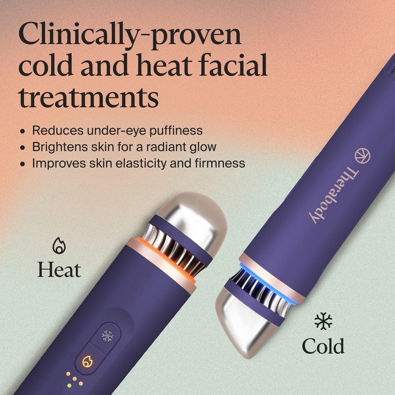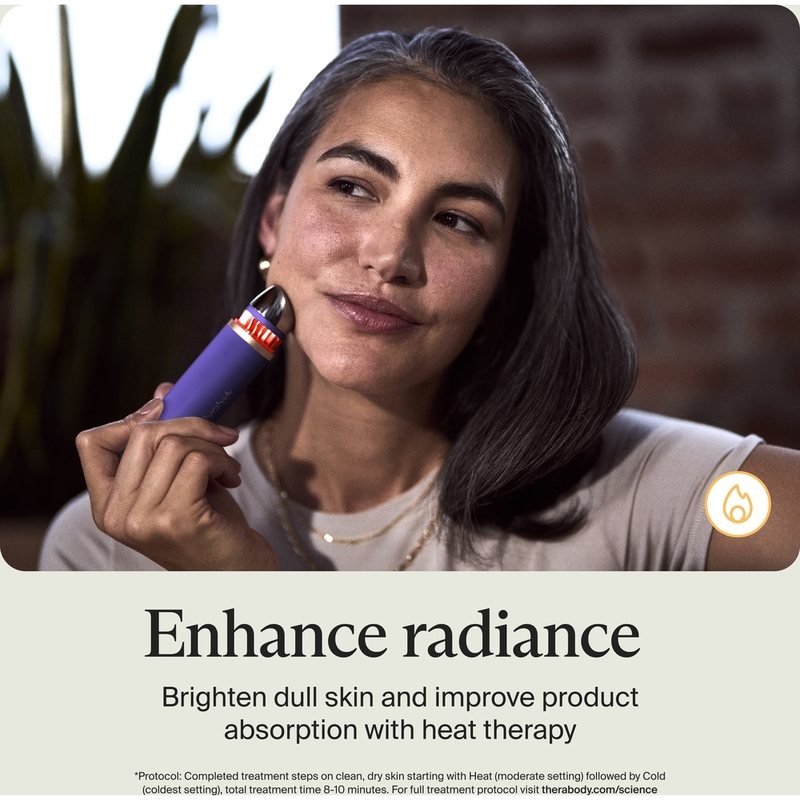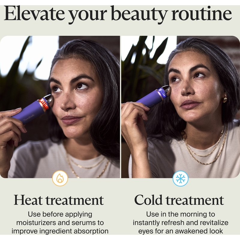 The TheraFace Depuffing Wand is a skincare device with science-backed cold and heat treatments to help you depuff and glow anytime, anywhere. The refreshing cold treatment instantly helps decrease puffiness, minimize dark circles, revitalize tired-looking eyes and reduce the appearance of pores. The rejuvenating heat treatment boosts lymphatic drainage, helps improve product absorption and enhances radiance. Designed with a contoured, easy-glide applicator tip to reach every inch of your face, even the curves and corners around your eyes and nose. Our proprietary Cryothermal Technology TM, allows the wand to reach each desired temperature in seconds and stays constant for your entire treatment.