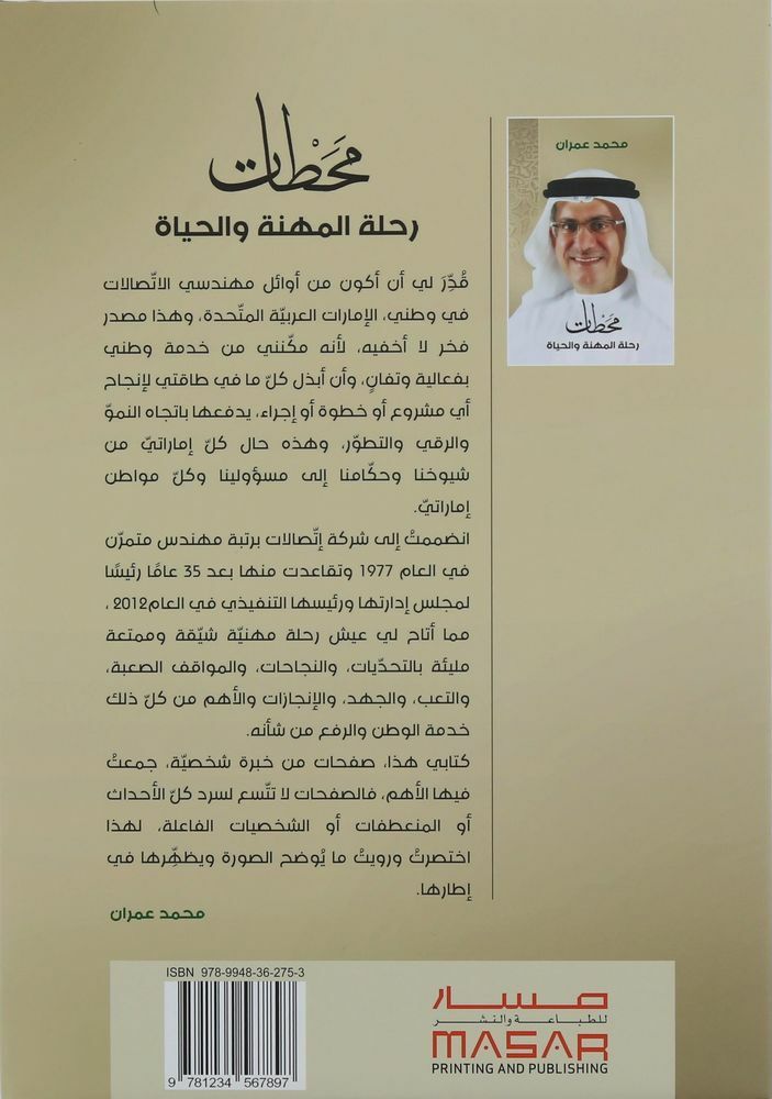 In his book, the writer Muhammad Omran deals with his journey since he joined the position of a trainee engineer at the Emirates Telecommunications Corporation in 1977 until his retirement from the position of Chairman and CEO in 2012 and other work that followed. In his account of his journey, the writer touches on the history of the development of the telecommunications sector in the UAE and the region, including the great development in mobile phones, optical fibers, satellites, and others.