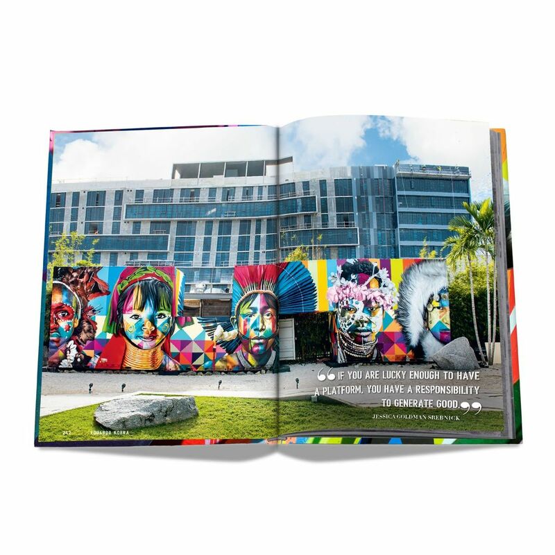 The story of Wynwood Walls is one of change through passion, art and community. When Tony Goldman stumbled upon the expanse of stock warehouse buildings in Miami’s Wynwood neighborhood, he saw a blank canvas. In 2009, the celebrated visionary set out to transform the area into a center for cultural exploration—with the help of the world’s most innovative and recognized street artists. Walls of Change: The Story of The Wynwood Walls is a rediscovery of a decade of art, inspiration and innovation, with Wynwood’s most celebrated murals, featuring never-before-seen photography of The Walls development, and special commentary from street art’s most iconic figures, including Shepard Fairey, Maya Hayuk, Kenny Scharf, Ron English, and current curators Jessica Goldman Srebnick and the Goldman family, among others. In just ten years, The Wynwood Walls has grown into a phenomenon in its own right, known as a milestone in artists’ careers ,withan ability to catapult unknowns and veterans alike. Under the leadership of CEO Jessica Goldman Srebnick, The Wynwood Walls has become one of the highest profile street art destinations in the world, welcoming over three million visitors annually.