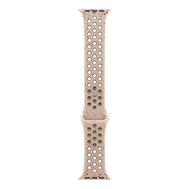 Made with compression-molded perforations for breathability, the Nike Sport Band is durable and strong, yet surprisingly soft. It features colorful flakes that create a randomized pattern, making each band completely unique. The smooth, dense material drapes elegantly across your wrist and feels comfortable next to your skin. A new aluminum pin-and-tuck closure gives the pin a fresh matte finish.
