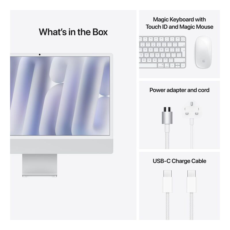 Apple 24-inch iMac with Retina 4.5K display (2024) Apple M4 chip with 10‑core CPU and 10‑core GPU / 16GB / 512GB SSD (Arabic/English) - Silver
