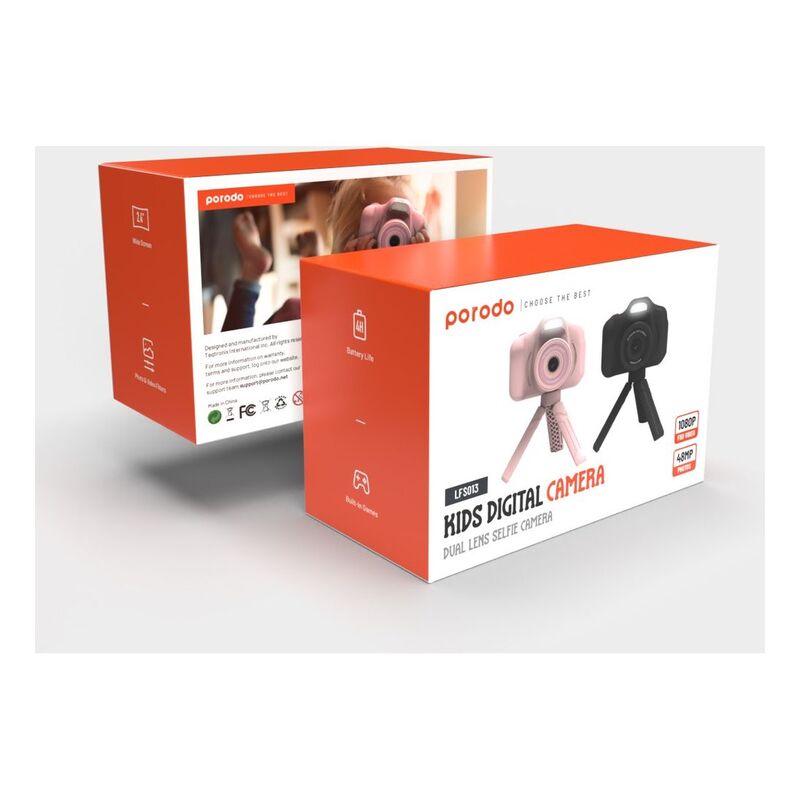 Porodo Lifestyle Kids Digital Camera Dual Lens Selfie Camera - Black