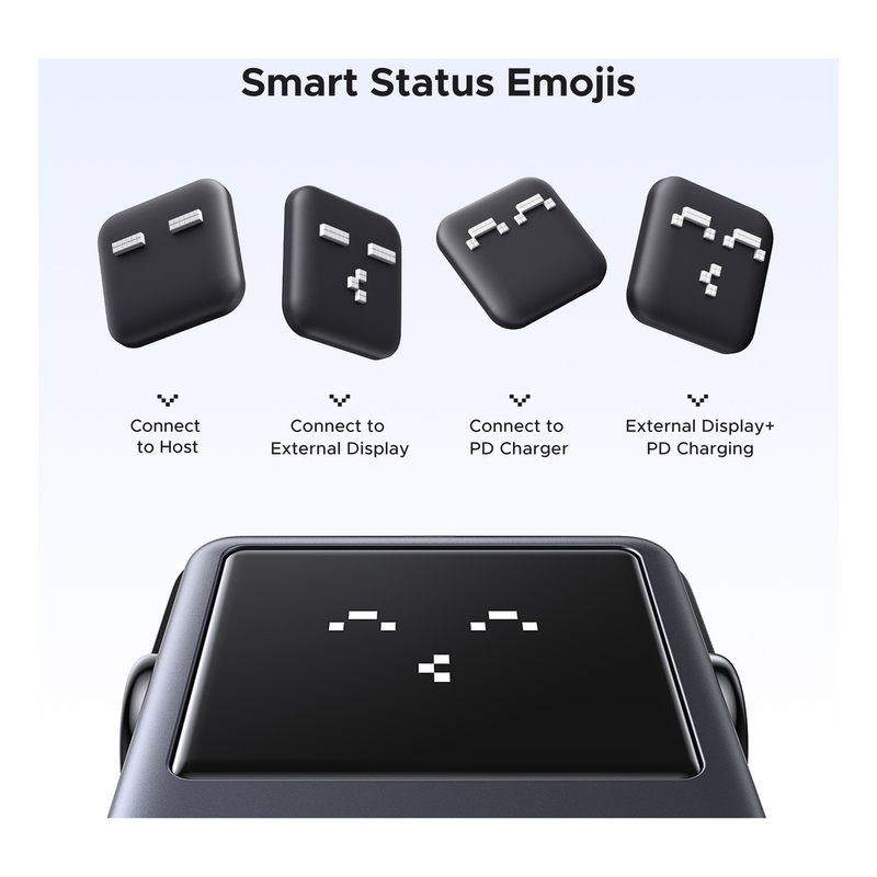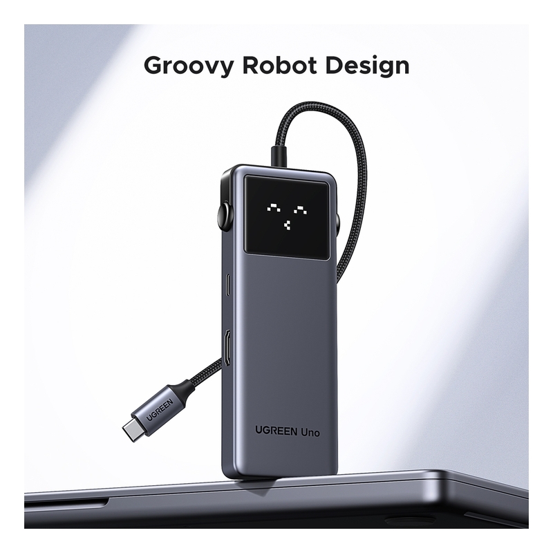 - Groovy Robot Design: 6-in-1 Uno usb c hub features four smart status emojis. Unleash more potential from your laptop's USB-C port with two 10 Gbps USB-C 3.2 Gen 2 ports, two 10 Gbps USB-A 3.2 Gen 2 ports, 4K@60Hz HDMI, PD100W.