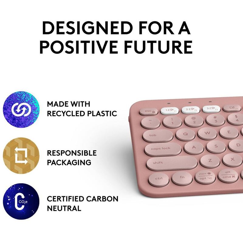 We don’t just stop at a unique design, we make sure that our products are responsibly made too. The Pebble Keys 2 comes in a range of colors made with more than 45% recycled plastic 18Pebble Keys 2 K380s plastic content: minimum 49% recycled plastic, excluding plastic in printed wiring assembly (PWA) and packaging so you can choose a color that fits your vibe.