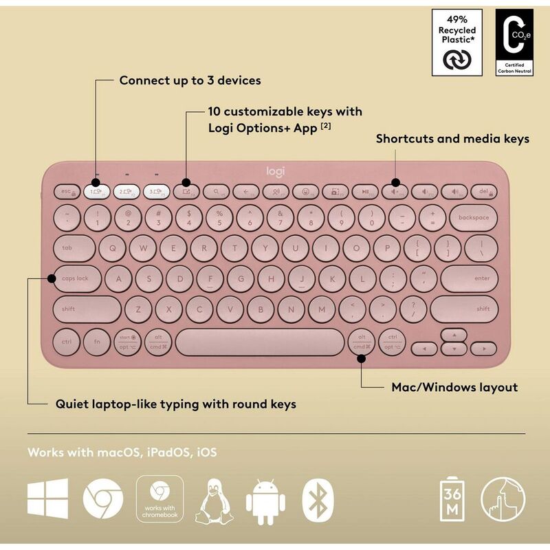 Logitech Pebble Keys 2 K380s Bluetooth keyboard - US - Tonal Rose