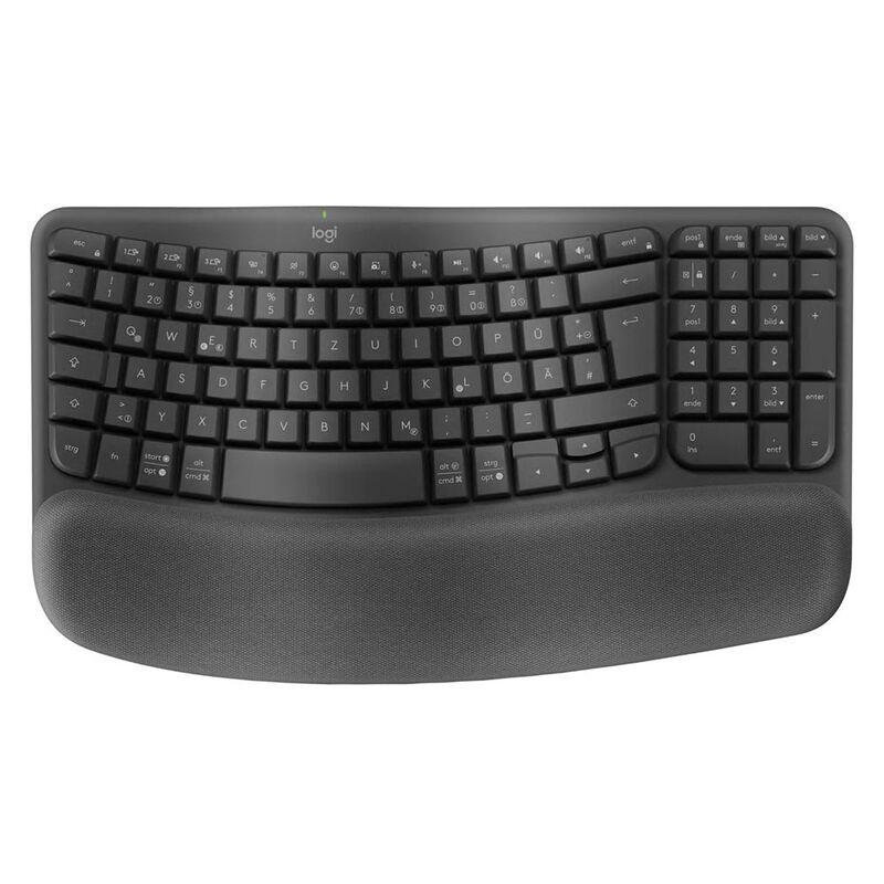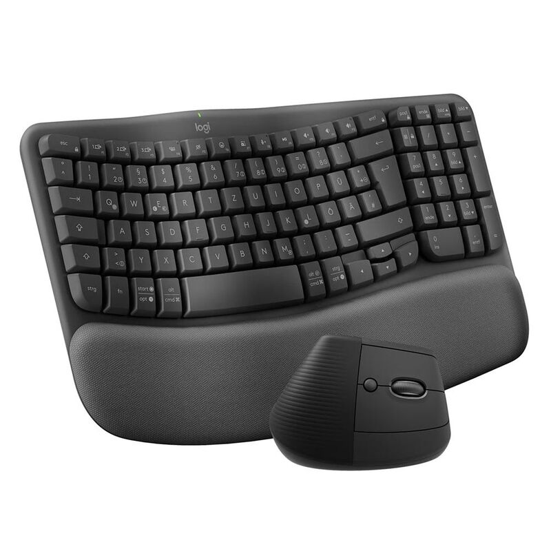 Logitech Wave Keys & Lift Vertical Mouse - set with ergonomic wireless keyboard and mouse - with padded wrist rest, Easy-Switch, Bluetooth, for multiple OS, Windows/Mac