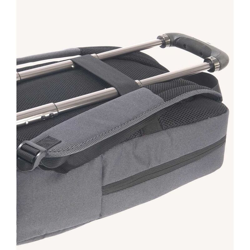 Backpack for Laptop 15.6" and MacBook Pro 16" made with fabric produced from recycled plastic. The convenient and roomy interior compartment features a protective pocket for your device. The adjustable, padded shoulder straps together with the ergonomic back, and external front pocket, make it convenient and useful for both work and leisure. Equipped with a trolley strap.