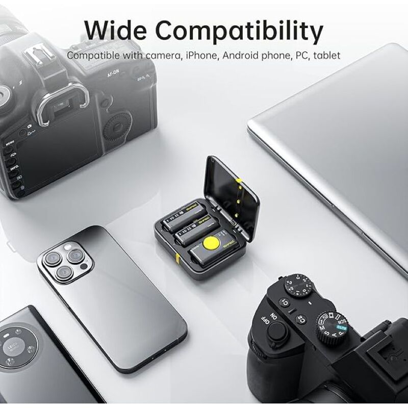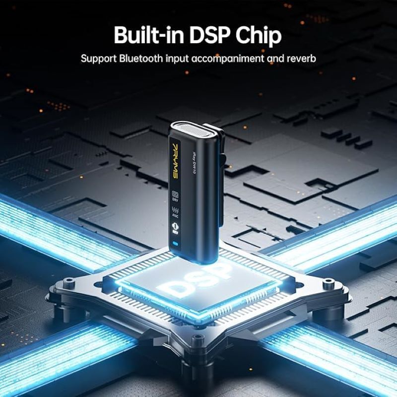 Mini Multi-functional Wireless Microphone1.48kHz/16bit Recording, CD-level Lossless Sound Quality2.Built-in Sound Card, Support Multi-scene Usage3.Innovative Duplex Transmission, Support Two-way Interaction and Monitoring4.Brand-new AI Denoise Technology, Support One-key Denoise5.Built-in Bluetooth 5.3 Chip, Support Bluetooth Input Audio6.Built-in DSP Chip, Provide Superior Reverb Effect 7.Digital/Analog Output, Universal for Camera, Smartphone, Computer8.Support Stepless Gain Control, One-key Muting and Mono/Stereo Mode9.Rechargeable Storage Case, Operating Time Up to 15 Hours10.USB-C Charging Port, Support Charging While Using11.Low Latency < 20ms, Working Range Up to 100m(Open Area)