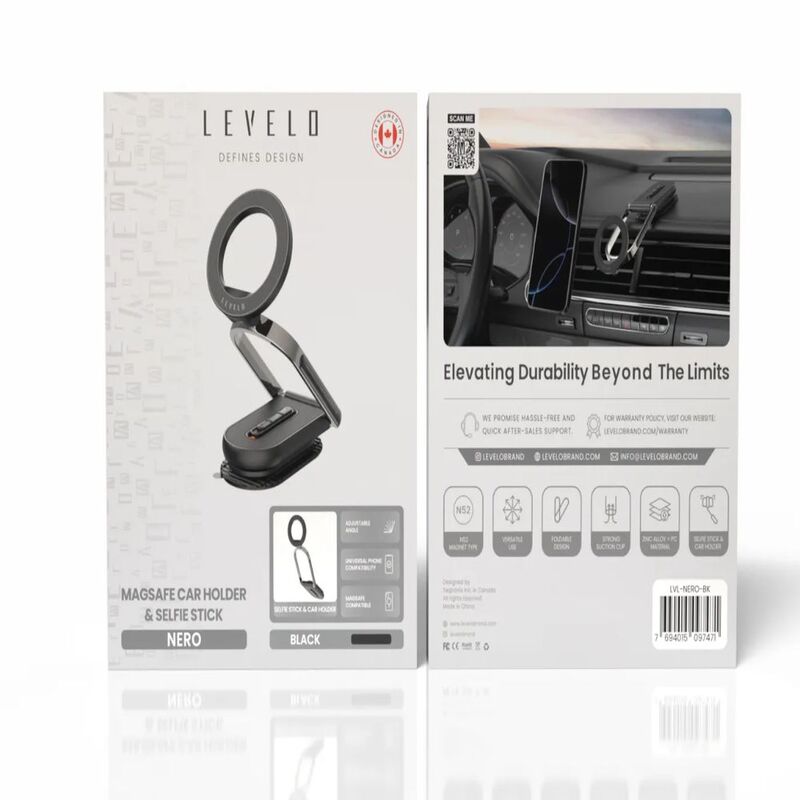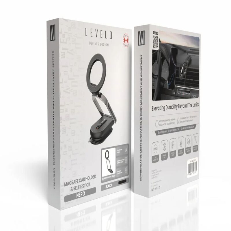 Levelo Nero Magsafe Car & Selfie Stick Portable Holder - Black