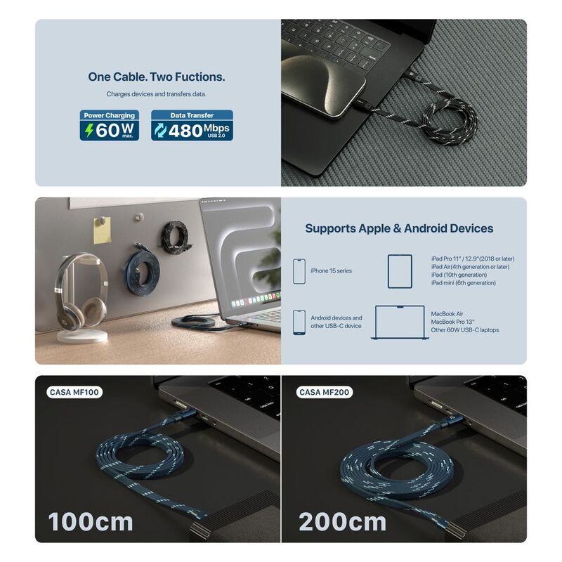 - Compatible with iPhone 15 and Android devices, iPad Pro 11"/12.9" (2018 or later), iPad Air 4 (2020 or later), iPad 10, iPad mini 6, MacBook Air, MacBook Pro 13", and other 60W USB-C laptops.