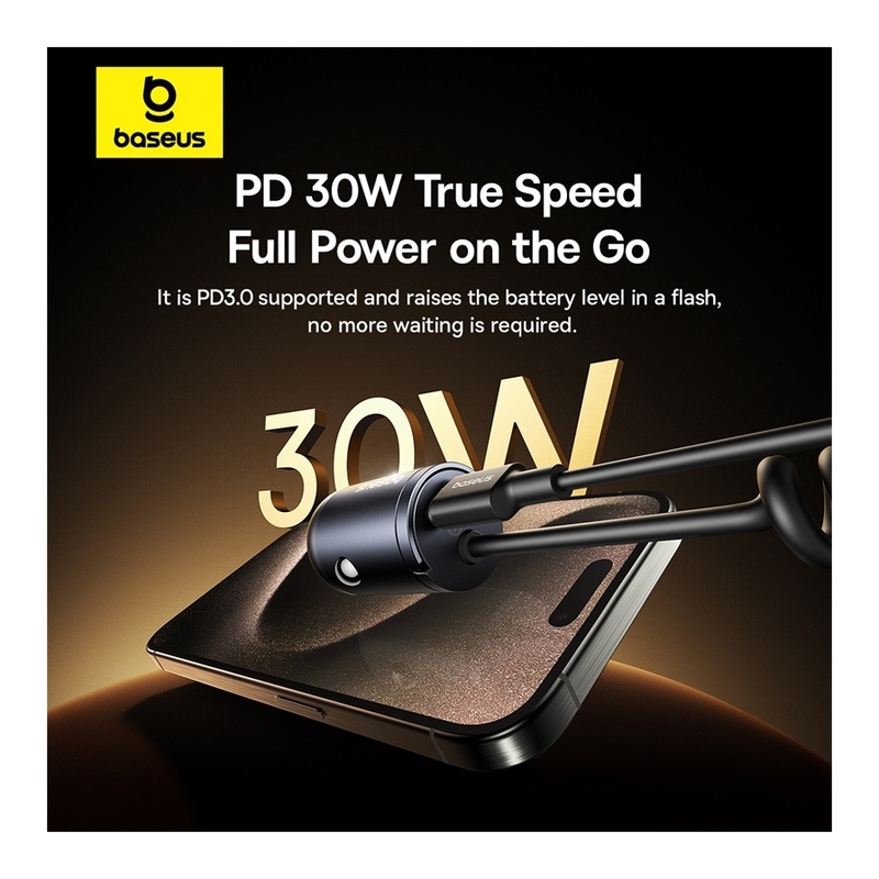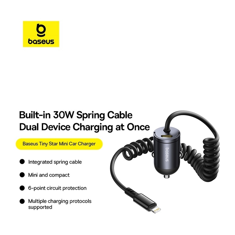 Baseus Tiny Star Mini Car Charger (C+L Cable Included) 30W - Cosmic Black