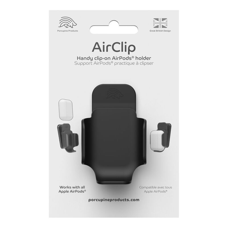 - AirClip is designed to clip onto your clothes, belt or inside your handbag to keep your AirPods safe and close to hand, without them ‘bouncing’ around on a carabiner clip or getting lost at the bottom of your bag.