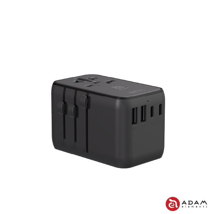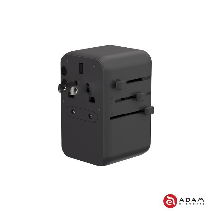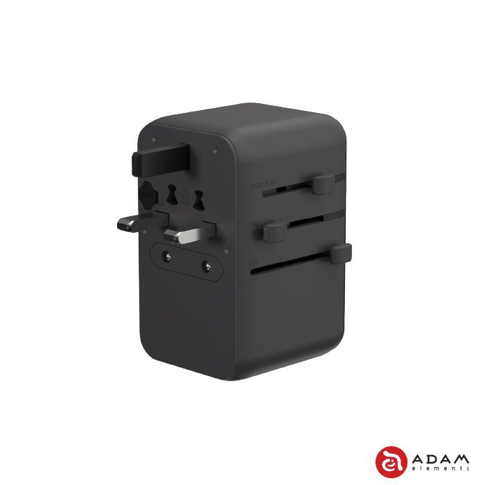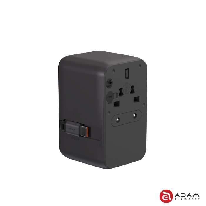 Adam Elements T35L 35W Universal Travel Adapter With Built-In USB-C Cable - Grey
