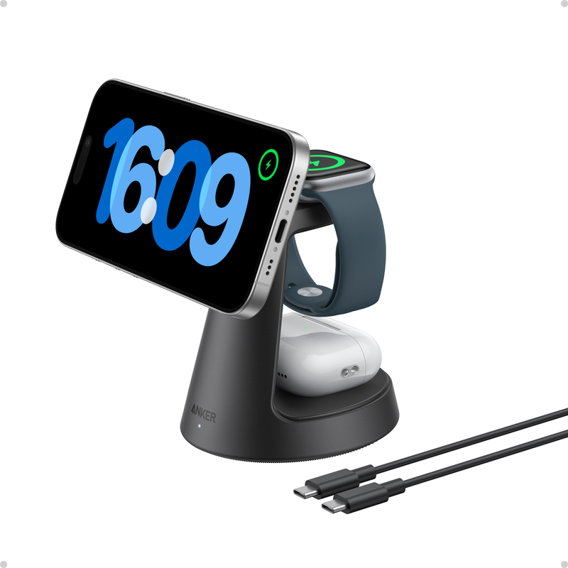Anker Maggo Wireless Charging Station 3-In-1 Dock Stand - Black (UK)