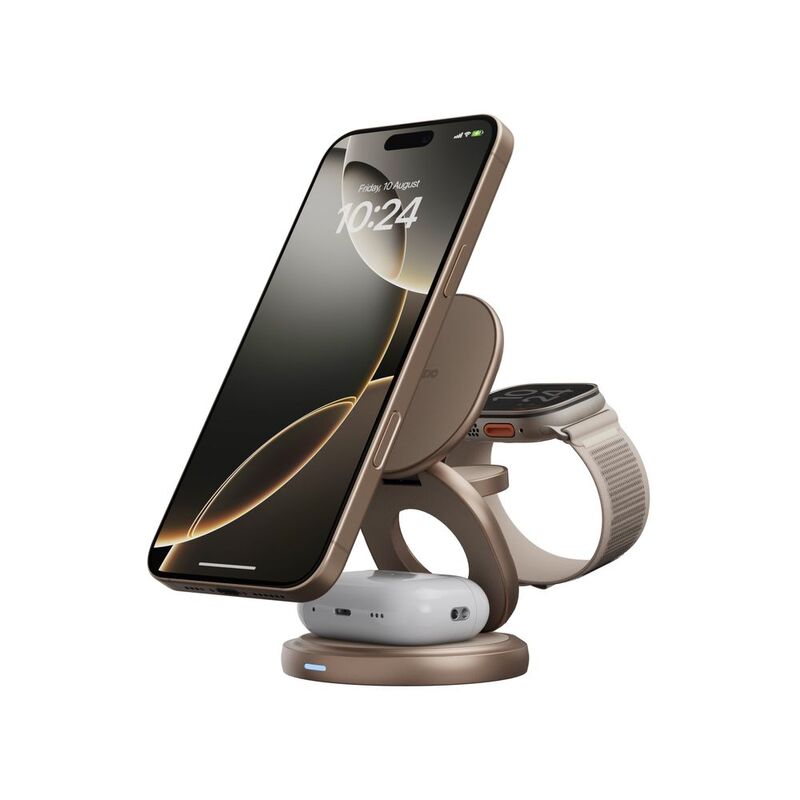Bazic Gomag Gyre 360 Rotating Base 3 In 1 Wireless Charger With Apple Watch And Airpods Charging - Gold