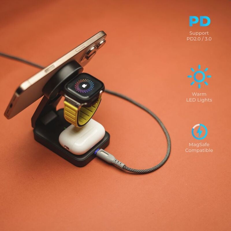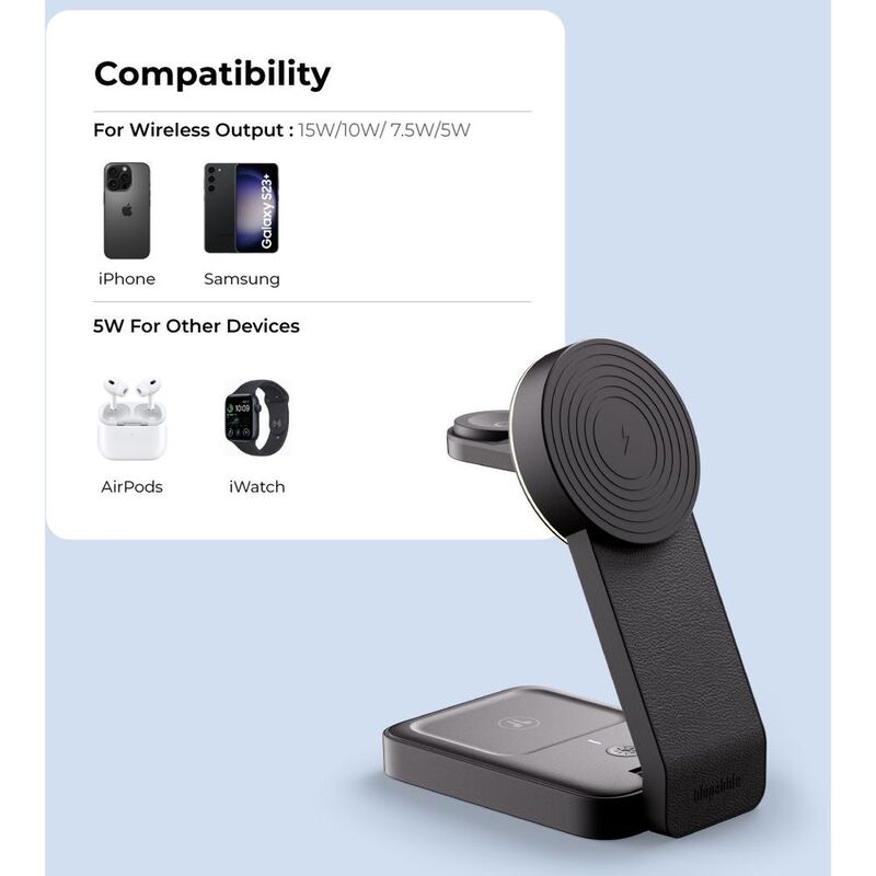 Blupebble 3-in-1 Qi2 Wireless Foldable Magsafe Charging Stand Black Bp-3In1Qi2 - Black