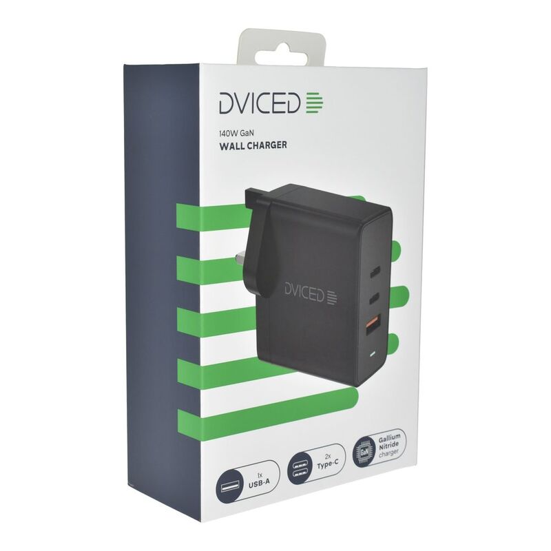 Dviced Wall Charger 140W Gan 2 USB-C 1 USB-A (UK) - Black
