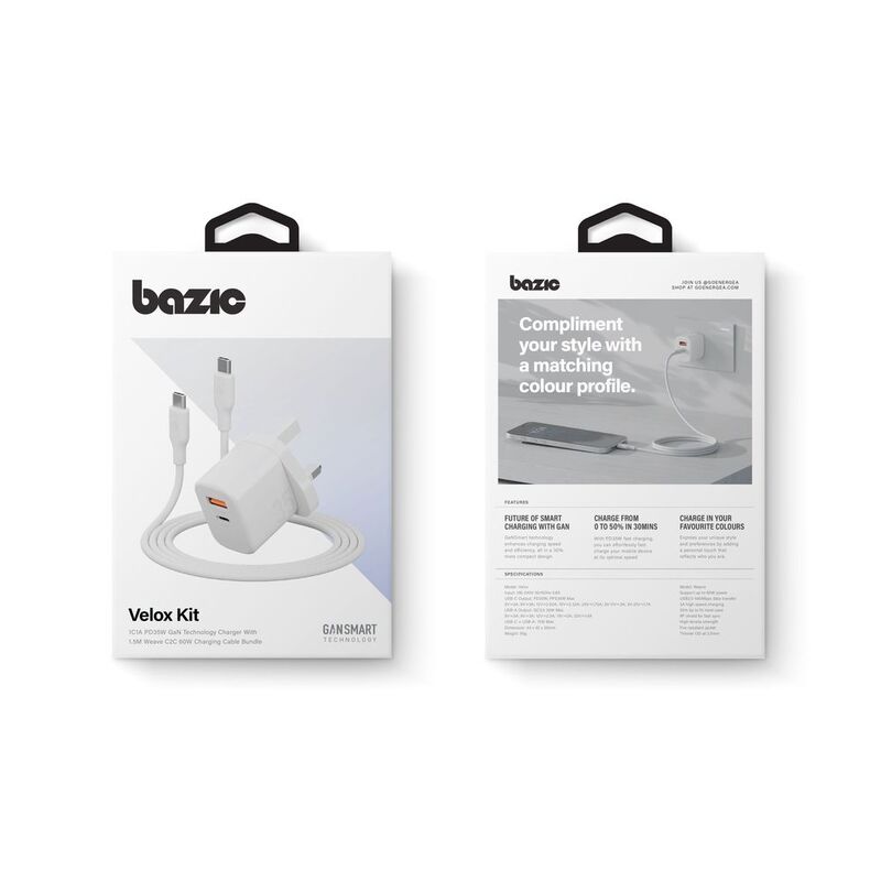 Energea Bundle Goport Velox Bundle UK Charger 35W With Weave Cable - Vanilla